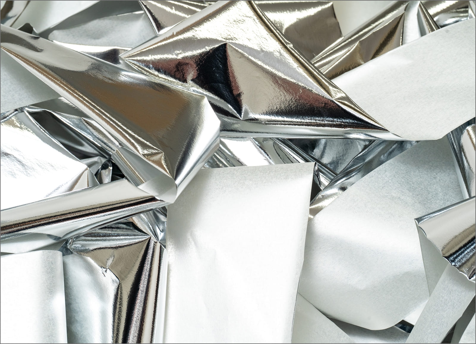 The paper keeps the metallic film in place and makes the yarn soft and flexible.